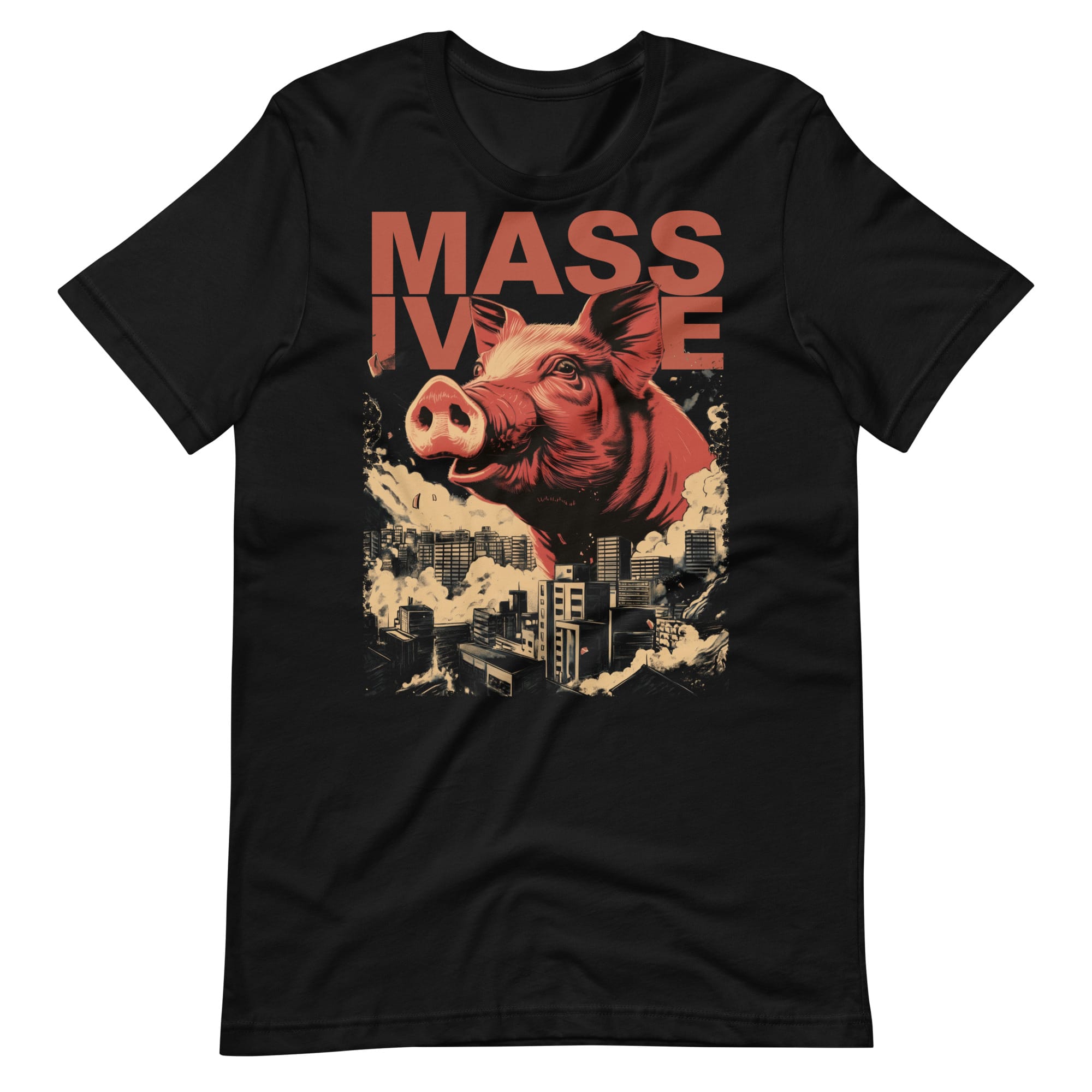 The Massive Pig T-shirt looks like parody—a hog swapped in for the king of monsters. But pigs are slipperier than jokes. They’re filthy and clean, greedy and generous, insult and compliment. That duality makes them the perfect kaiju stand-in.