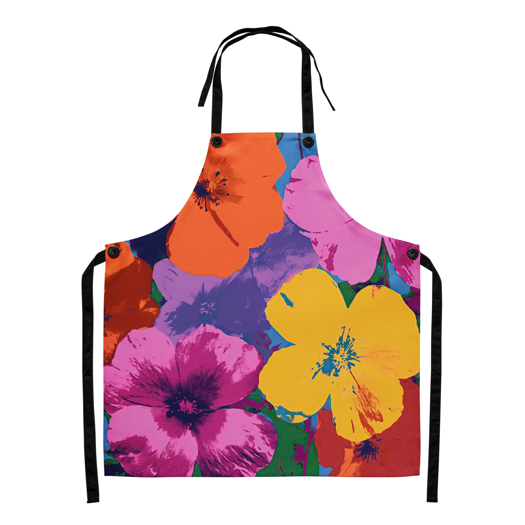This apron borrows that same irreverent logic. It isn’t Warhol’s flowers — it’s what happens when that pop sensibility blooms again, unapologetically, in the kitchen. Art reimagined as protection from splatters and spills. The perversity of wearing something painterly to cook feels right — self-aware, ironic, even a little glamorous.