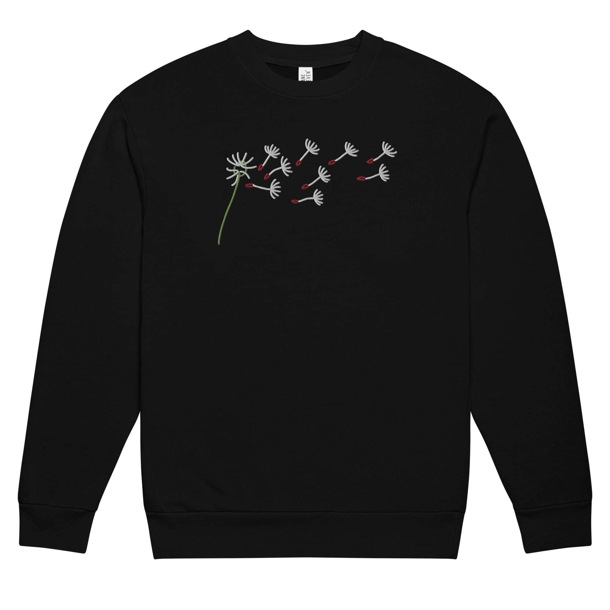 Dandelion Whispers Embroidered Crewneck—Black / Pebble Blue / Lunar Rock