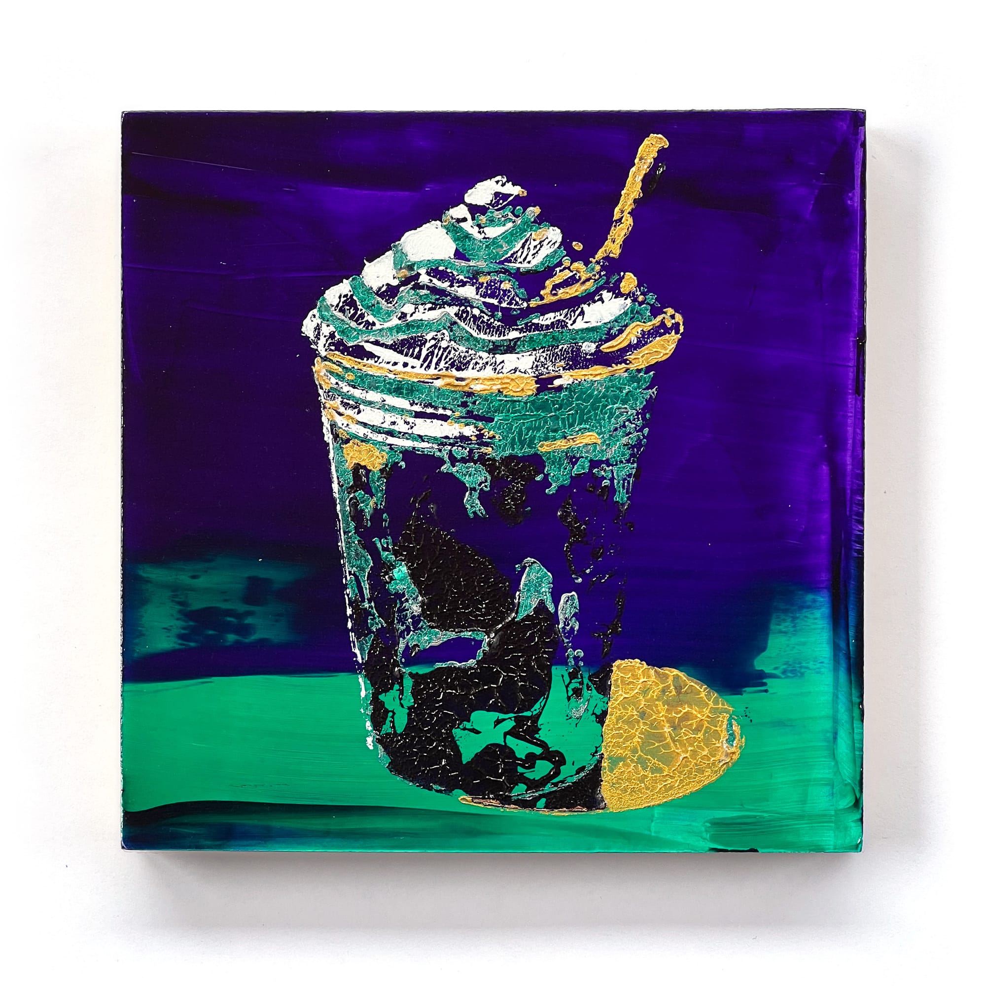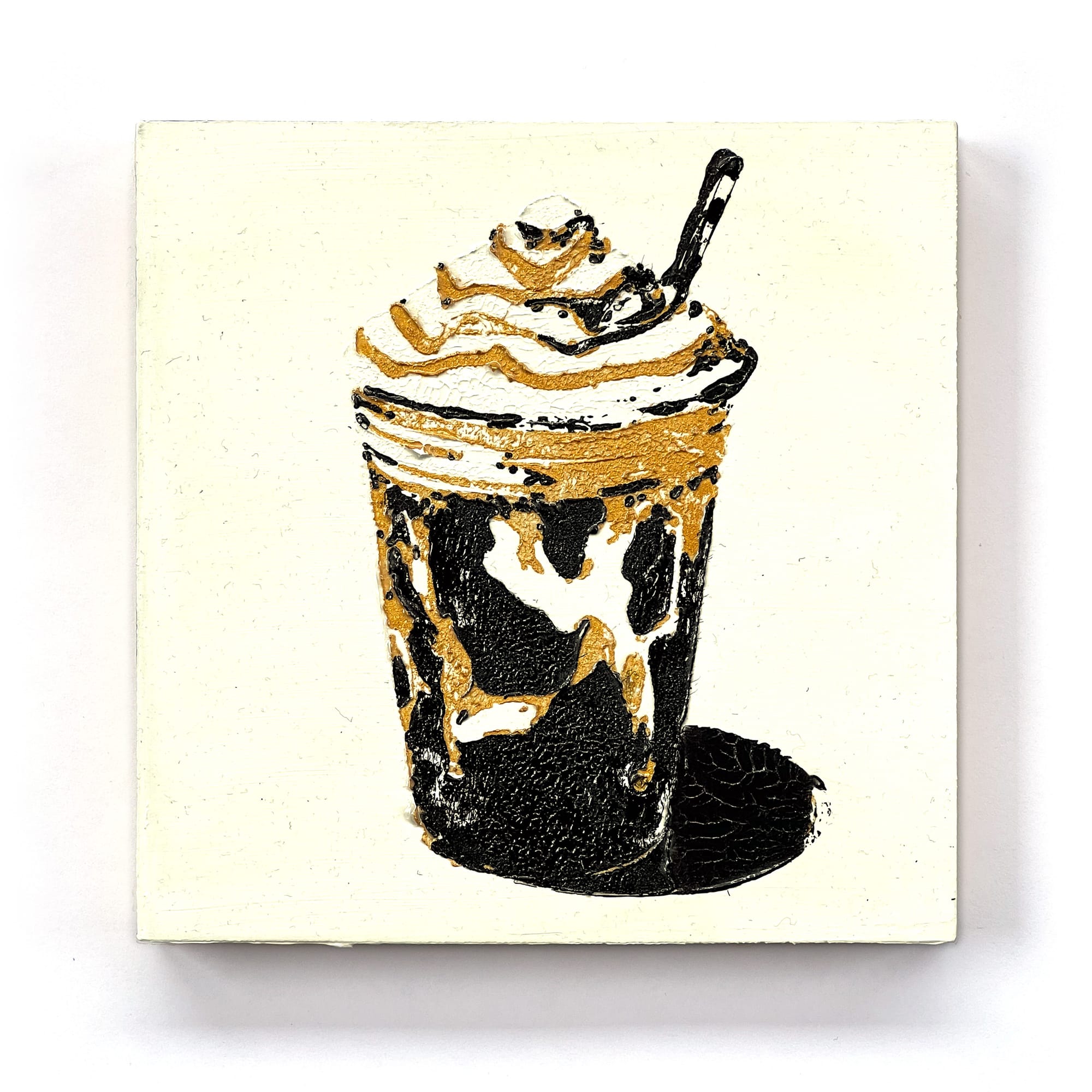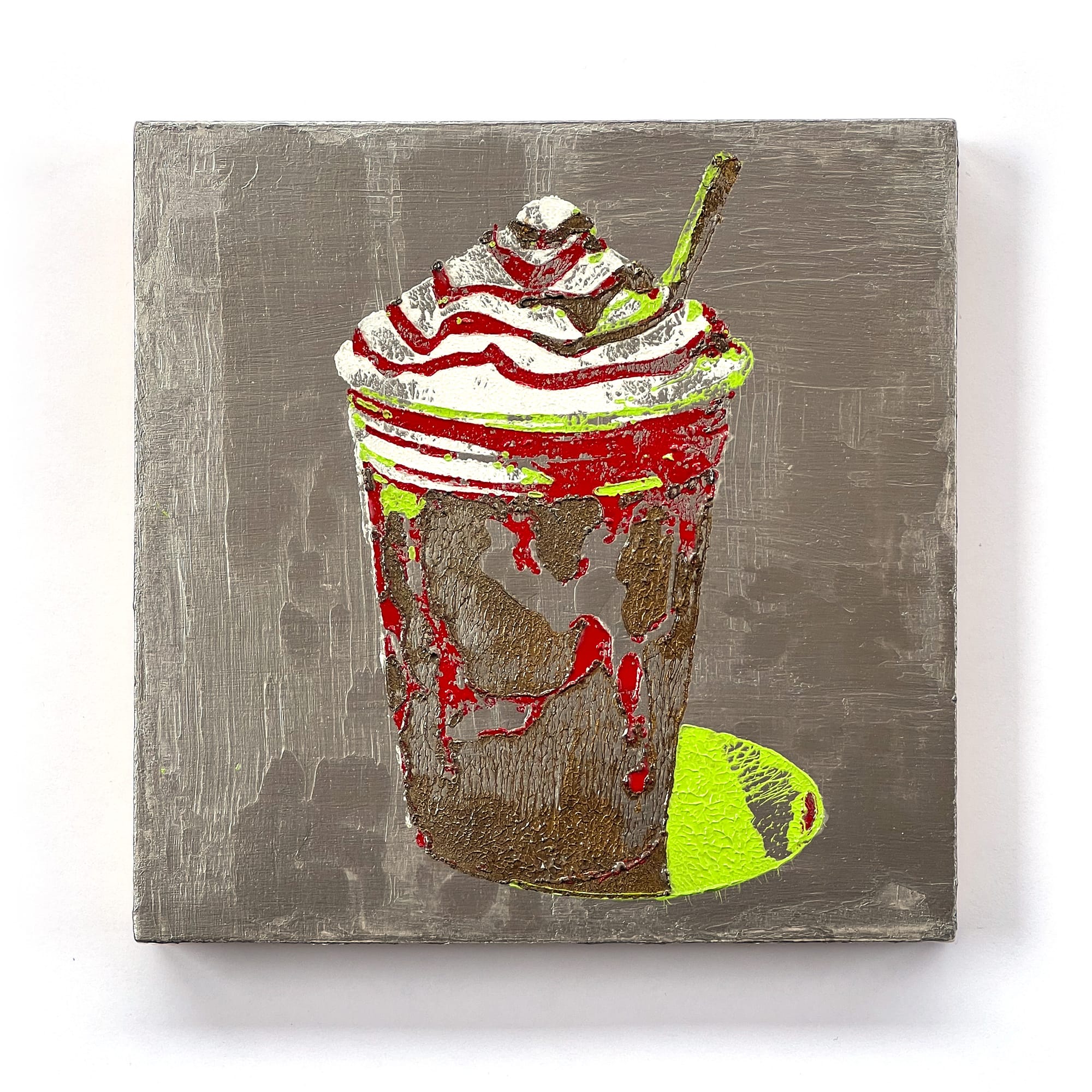 These paintings sit firmly in today’s world—not as kitsch, not as parody, but as a document of now. The branded drink has become our era’s still-life object: comforting, disposable, status-driven, and quietly absurd.